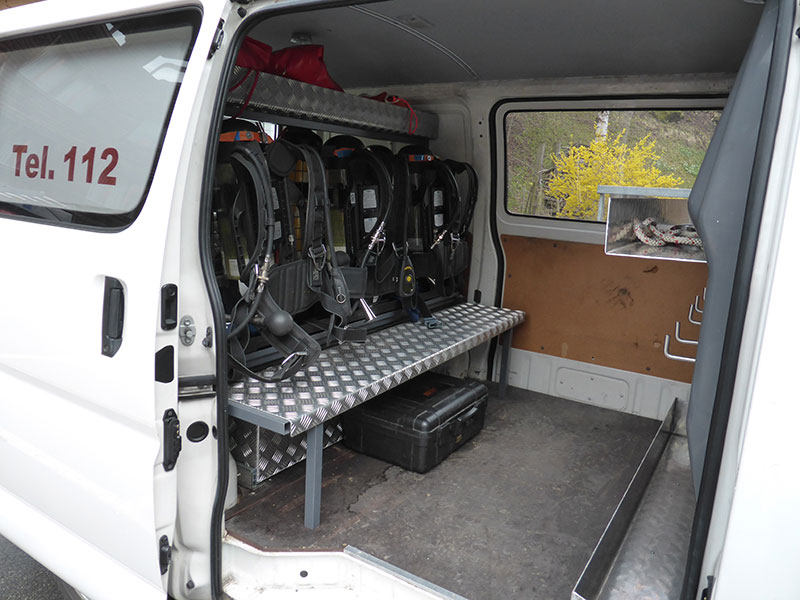 | Ausrüstung | 9 Eingebaute Atemschutzgeräte mit Fluchthaube und Checkbox für Atemschutzüberwachung. |