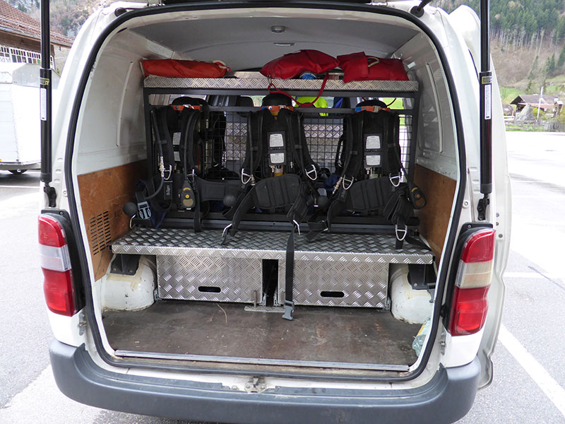 Ansicht rechte Seite mit 3 Atemschutzgeräten