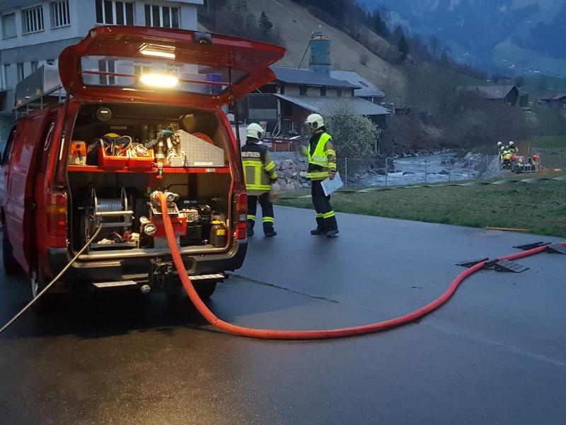 Obwohl die Kander relativ nahe am Gebäude vorbei fliesst, war der Wasserbezugsort wegen dem eingezäunten Grundstück eine Knacknuss für den Einsatzleiter.