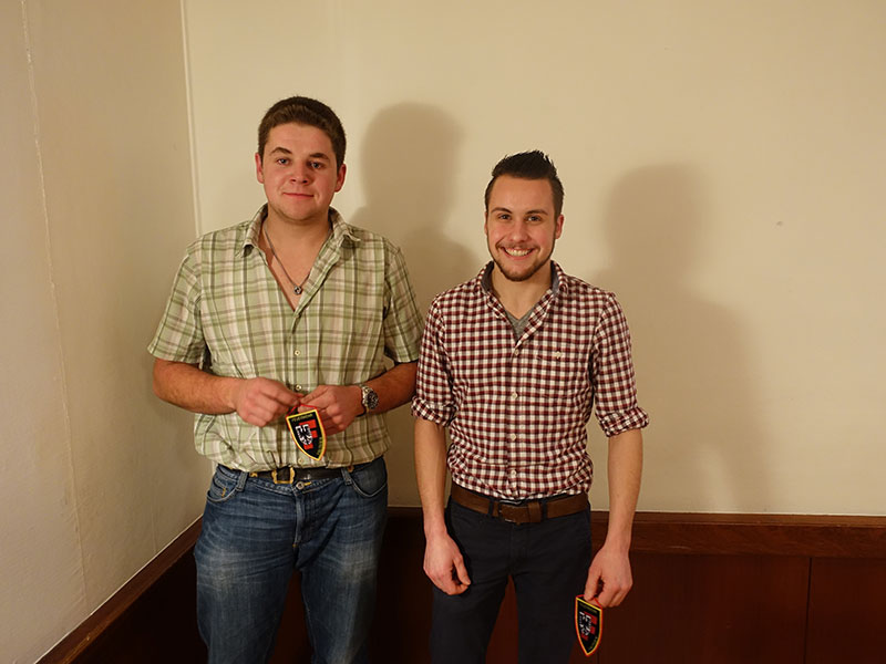 Herzlich willkommen in der Feuerwehr: Rudolf Grossen und Samuel Alessandri.