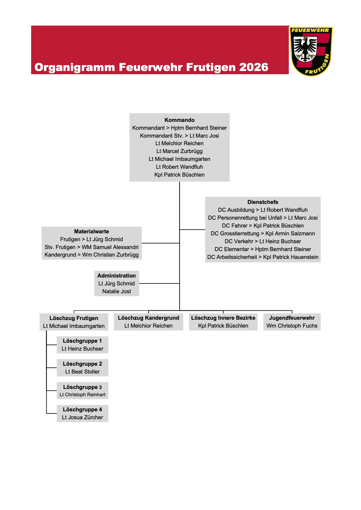 - Bekämpfen von Feuer, Elementar- und anderen Schadenereignissen in den Gemeinden Frutigen und Kandergrund