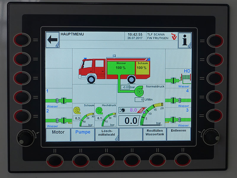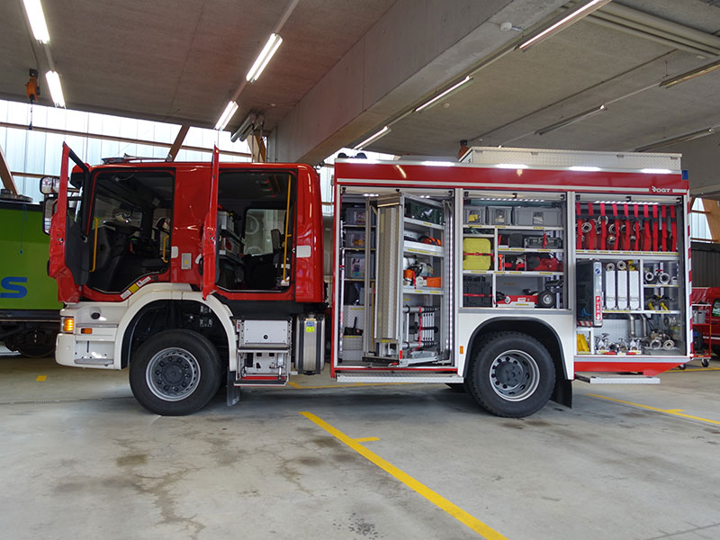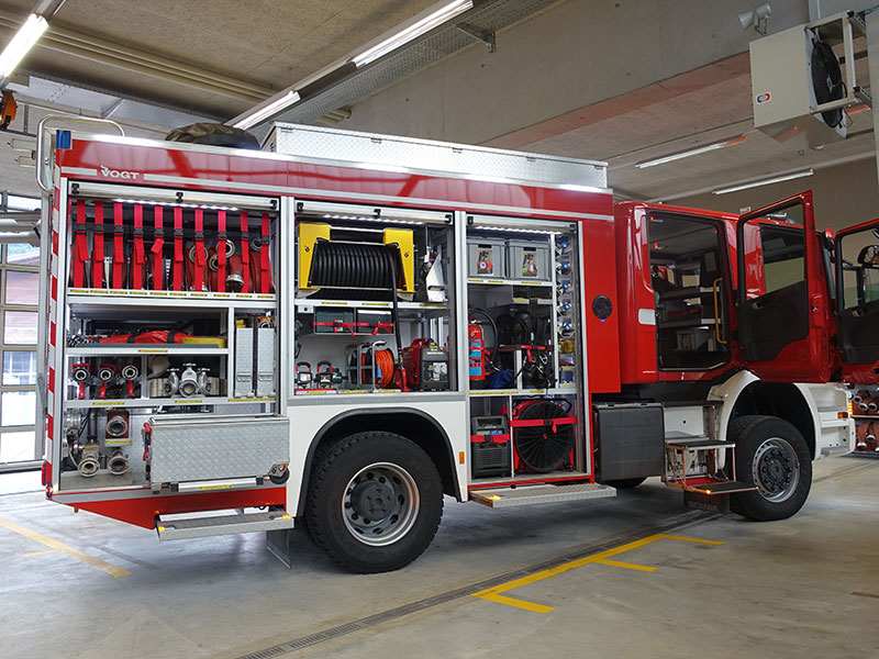 | Ausrüstung | 2800 l Wasser 200 l Schaumextrakt 1 Schnellangriff 5 Atemschutzgeräte Leiter 8 m Farblich getrenntes Schlauchmaterial Beleuchtungsmast LED Beleuchtungsballon |